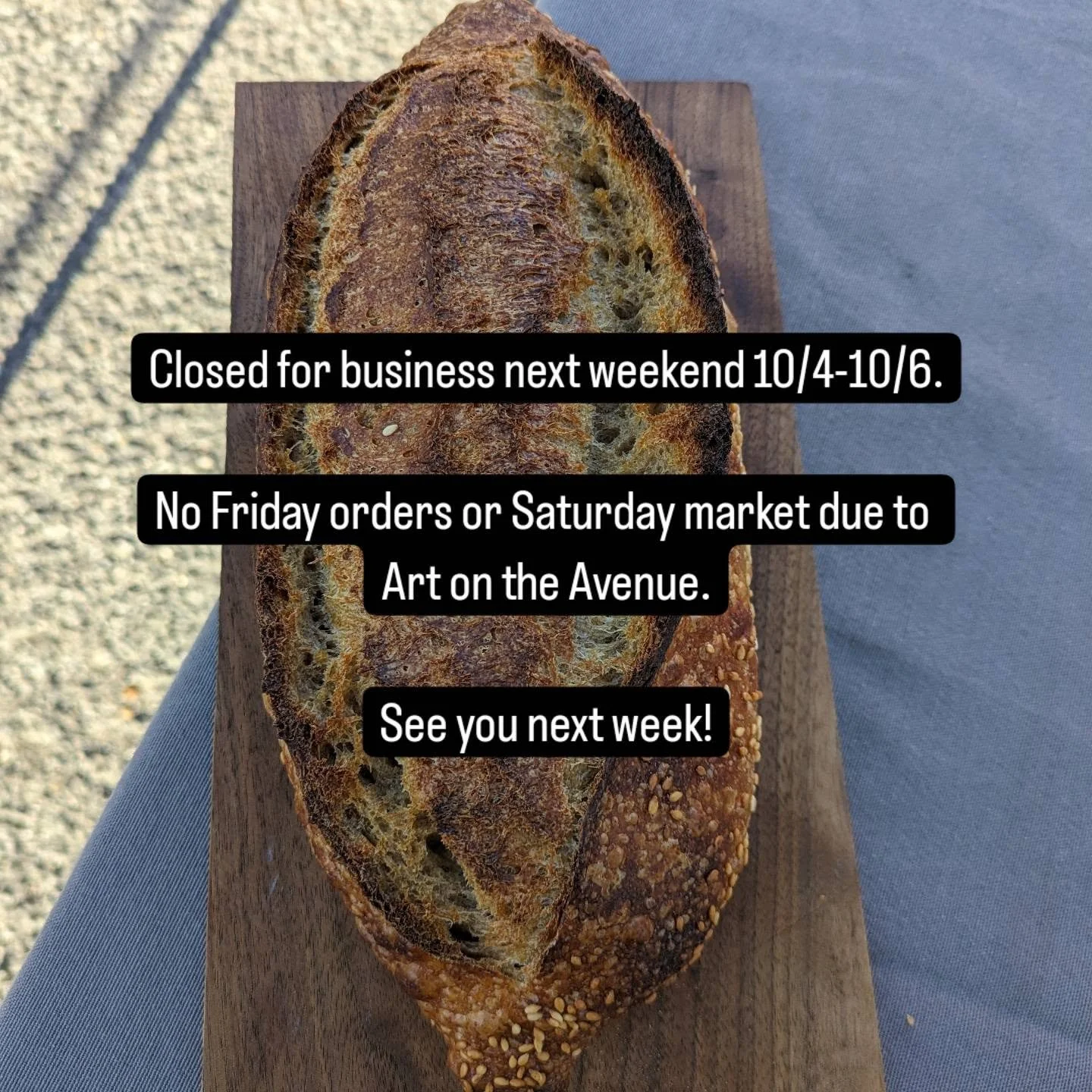 Now offering: Farmers markets, weekly bakes for pickup or delivery and custom large catering orders.